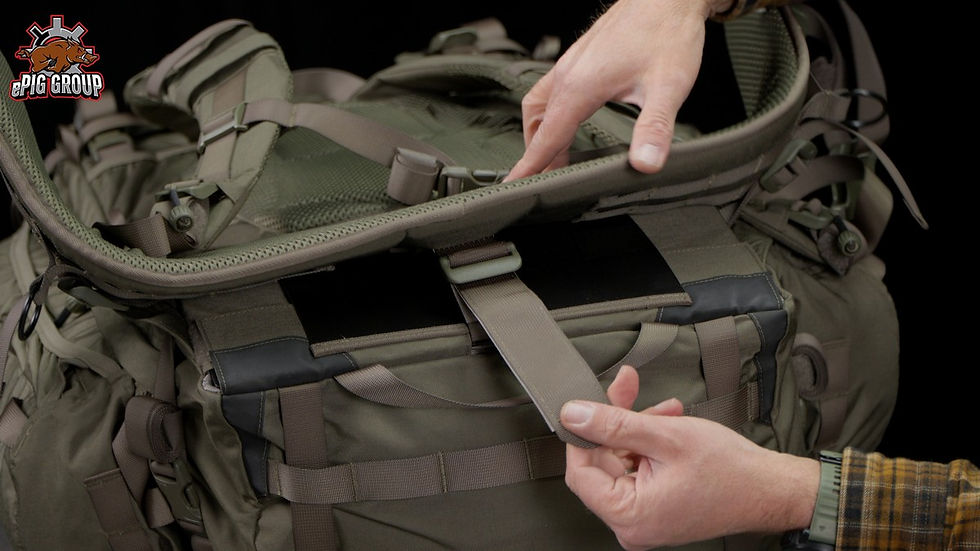 Am Boden ist auch noch einmal PALS und man kann sehr gut einen zusätzlichen Griff erkennen, um den Rucksack z.B. aus einem Fahrzeug zu ziehen, oder an einem Seil ablassen zu können.